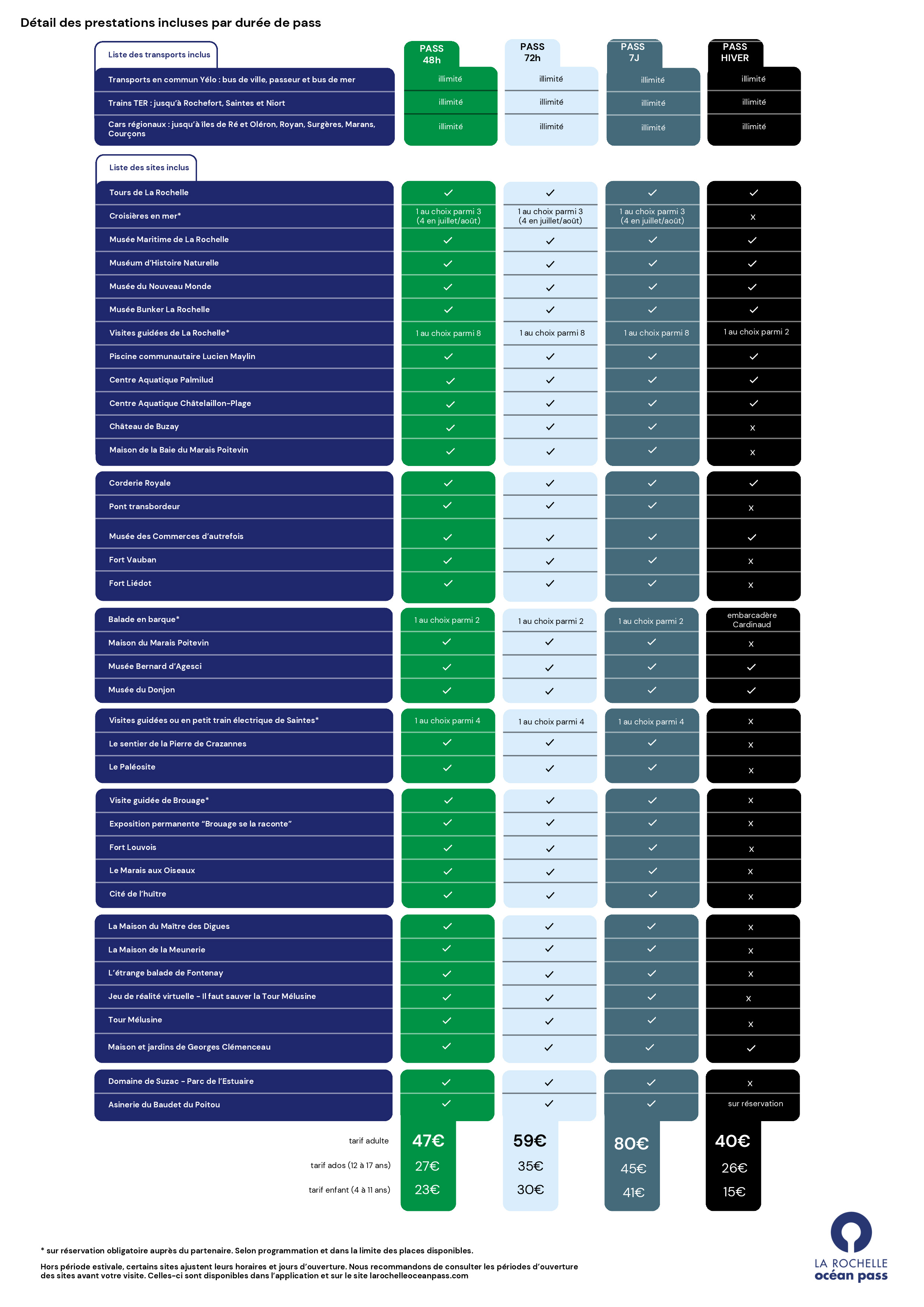 Liste des prestations incluses dans le La Rochelle Océan Pass :